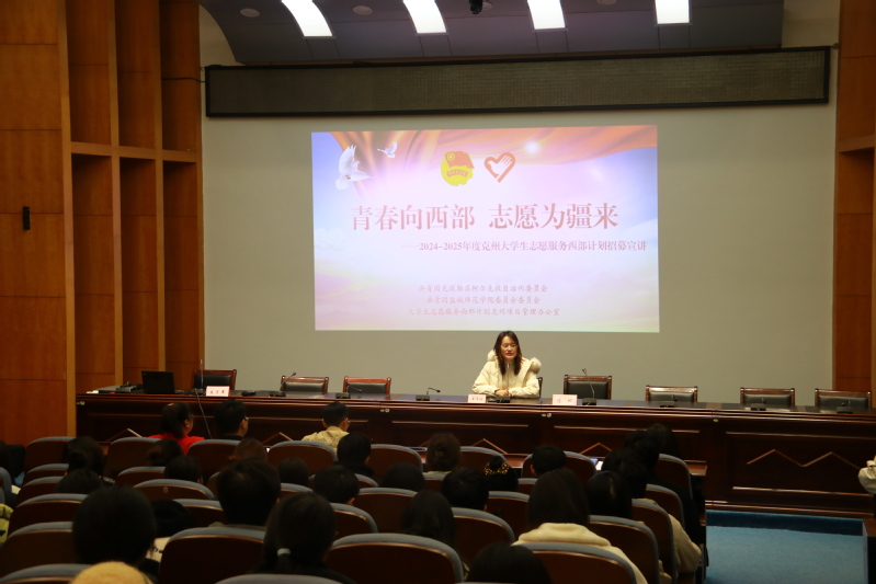 “到西部去,到基层去,到祖国和人民最需要的地方去。”12月29日,以“青春向西部,志愿为‘疆’来”为主题的西部计划宣讲活动在beat365厚德楼二楼西会议室圆满举行。新疆维吾尔自治区克州团委副书记黄肖姣一行来beat365开展西部计划项目高校宣讲活动。此次活动由校团委主办,共吸引150名学生前来参与。