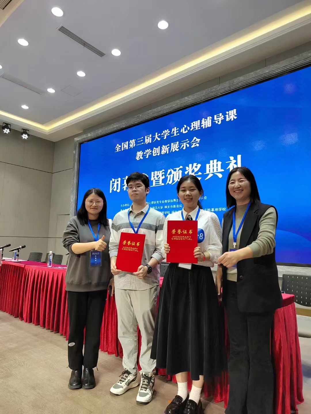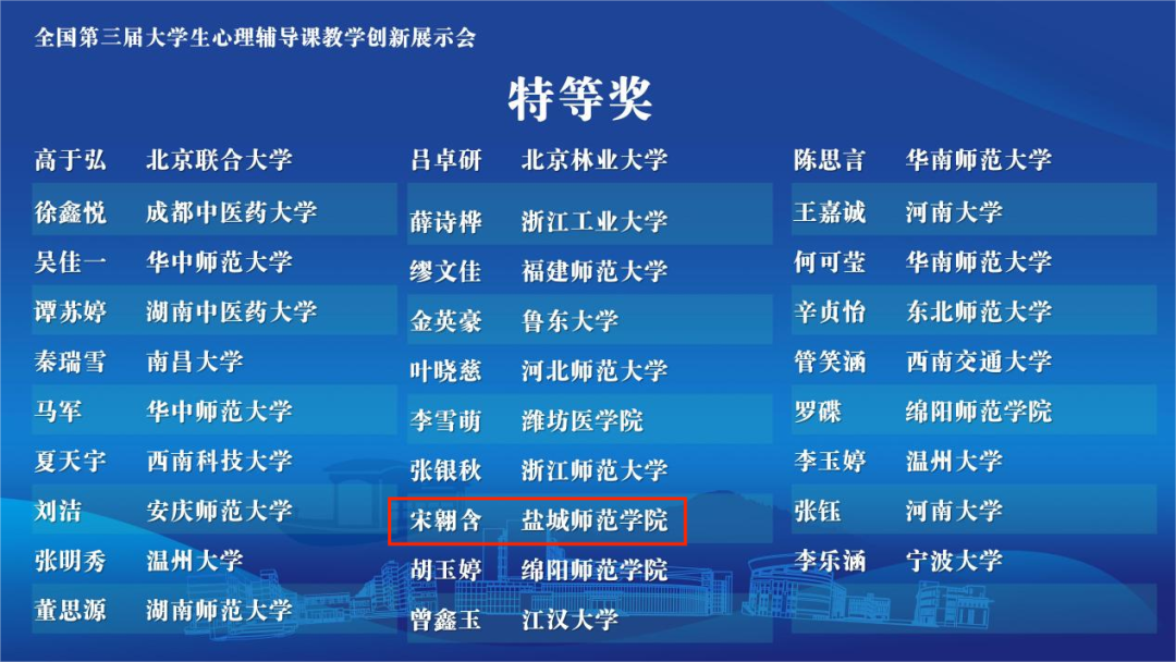 4月26日,全国第三届大学生心理辅导课教学创新展示会在浙江桐乡落下帷幕,beat365教育科学学院应用心理学专业2021级本科生宋翱含(指导老师:厉飞飞、吴逸凡)获全国特等奖,闵亮(指导老师:符颖)获全国一等奖。