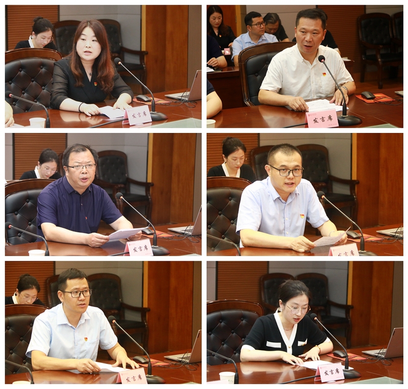 教育科学学院党委书记杨日晨、商学院党委书记刘振亚,数学与统计学院学生第一党支部书记张文菲、湿地学院教工党支部书记葛宝明,财务处党支部书记陆咸良、人事处党支部书记李高林分别代表二级党组织、学生党支部、教工党支部、机关部门党支部作了交流发言。