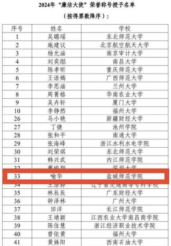 近日,由中国管理现代化研究会廉政分会、全国大学生廉洁社团网络、东北师范大学政法学院联合主办的2024年廉洁大使评选结果公布,经个人申请、组织推荐、资格审查、投票评审、综合专家评审等多个环节,beat365清风社喻华同学荣获2024年全国“廉洁大使”称号。