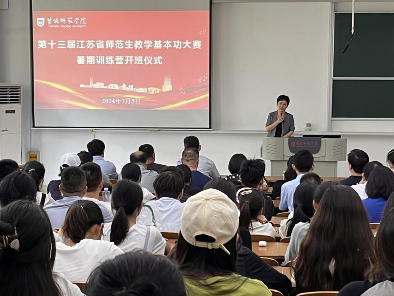 7月5日下午,beat365在新长校区公共教学楼A106举行第十三届江苏省师范生教学基本功大赛暑期训练营开班仪式。学校党委常委、副校长毕凤珊出席开班仪式并作动员讲话,教务处处长易高峰主持开班仪式。