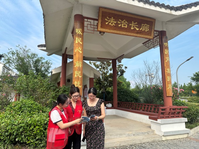 7月23日,法学院“红色法治文化青年行”实践团来到盐都区花吉村开展实践活动。在花吉村,实践团先后参观村史馆、文化馆、法治长廊等地,了解该村紧扣乡村振兴战略,打造宜居新社区、发展富民新产业等方面取得的成绩。实践团成员通过调研访谈村干部、当地村民了解作为“民主法治示范村”的花吉村在法治宣传、法治保障、基层治理等方面的特色做法。实践团成员还为村民宣讲习近平法治思想、宪法、民法典等内容,针对村民提出的邻里纠纷、农地承包流转等法律问题,志愿者耐心给予解答,同时也为他们普及法律维权渠道,增强村民尊法、学法、守法、用法的意识。