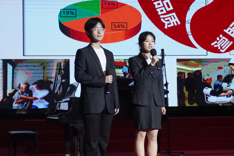 合唱组歌音乐会现场还展示了商学院《汇聚新青年力量,助推新质生产力》团干大比武项目,信息工程学院的“智绘桥梁,青春灯塔”智慧助老项目,历史与公共管理学院的“赤子微光,点亮心途”困境儿童陪伴与心智塑造青年志愿服务项目以及海洋与生物工程学院的《不“苷”平凡—C21甾苷细胞工厂助力乡村振兴》第十四届“挑战杯”中国大学生创业计划竞赛项目,各项目展示与音乐会歌声浑然天成,让文艺思政课有味更有料。