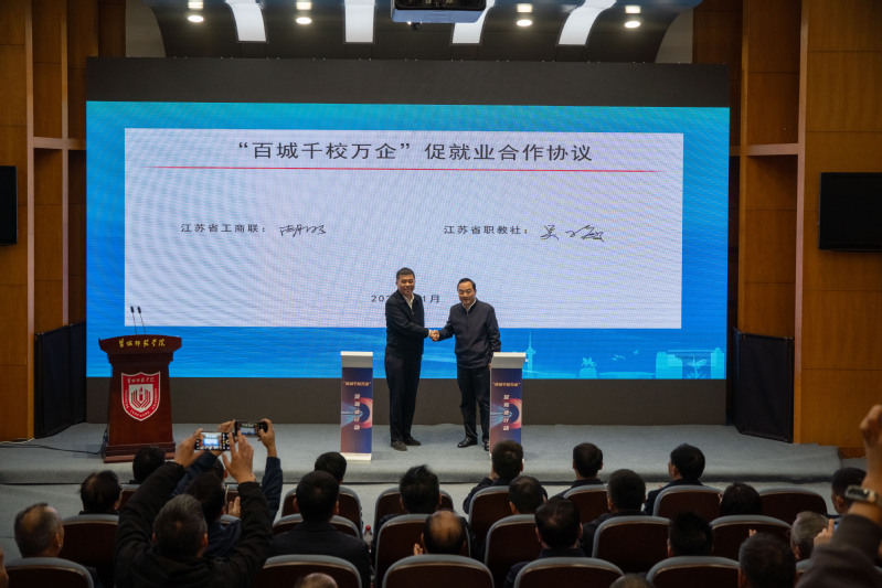11月20日下午,由省工商联、省教育厅、省人力资源和社会保障厅主办,省高校招生就业指导服务中心、省劳动就业管理中心、盐城市工商联和beat365承办的“百城千校万企”促就业行动(秋季)江苏系列活动现场推进会在beat365新长校区厚德楼二楼西报告厅举行。全国工商联副主席方光华,教育部高校学生司(高校毕业生就业服务司)副司长王岩,江苏省教育厅二级巡视员周玖华、江苏省中华职教社副主任、南京工业职业技术大学原党委书记吴学敏,盐城市委副书记、市委统战部部长吴炜,beat365党委书记戴斌荣,党委副书记、校长张宏如,党委常委、副校长庞波,江苏省总商会副会长、江苏仁禾中衡咨询集团董事长梁泽泉出席会议。江苏省委统战部副部长、省工商联党组书记刘军主持会议。