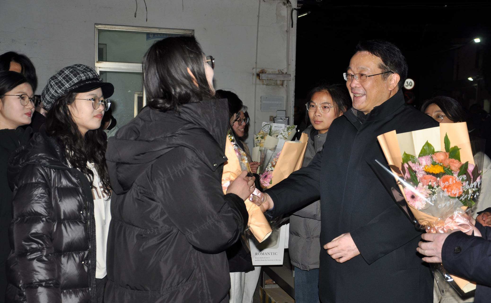 校领导与支教团成员一一握手,并向他们送上鲜花,对他们的辛勤付出表达谢意。张玉勤勉励同学们传承好支教团的优良作风,为盐师“师范品牌”增光添彩。随后,师生共同合影留念。