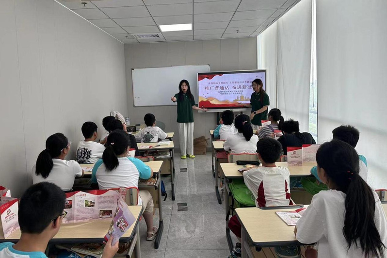 文学院“山海同语 青春筑梦”社会实践团在暑期立足“语言”和“文化”两大主线,聚焦“国家通用语言文字的推广普及”“乡村语言文字应用现状调研”“中华优秀语言文化传承发展”“中华民族共同体建设”等四个方面,深入全国各地开展趣味学语课程、云端一对一辅导、红色记忆传承、经典诵读推广等系列活动,形成了85条音频,7万余字的调研访谈记录。团队与新疆图木舒克市骨干教师代表开展“普语筑梦,师传心声”推普调研座谈会,并建立“推普实践基地”。团队奔赴新疆察布查尔县高级中学开展支教活动,将普通话推广融入日常学习教学过程中,并联合“益童前行”乡村振兴项目通过“云支教+捐赠物资”的方式在贵州省铜仁市沿河第八完全小学开展志愿服务活动。