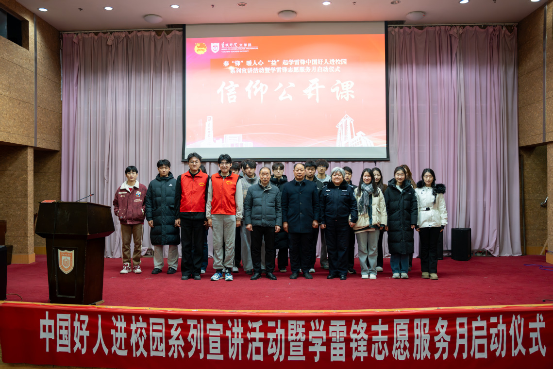 活动中,文学院“筑梦暖阳 盐声嘹亮”志愿服务团代表以诗歌朗诵《雷锋,是新时代的筑梦者》致敬雷锋精神,铿锵的誓言与深情的演绎感染全场。2024年“中国好人”田士华结合自身志愿服务经历主讲信仰公开课,分享“奉献、友爱、互助、进步”的志愿服务精神,鼓舞青年学子投身公益事业,书写新时代雷锋故事。