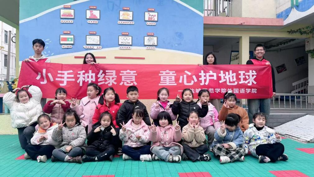3月12日,在第46个植树节到来之际,外国语学院志愿者走进社区、幼儿园开展以“春芽遇童趣,绿意共生长”为主题的植树节活动。在育才社区七色花幼儿园,志愿者为孩子们带来一场别开生面的植树科普的课堂,让幼儿在欢声笑语中感受绿色。在学校附属幼儿园,志愿者以生动活泼的语言向幼儿园小朋友讲解植树节的由来。通过精心准备的视频,将四季更迭中树木的变化、人们植树造林的场景逐一呈现。在活动的互动环节,主持人细心的回答每位小朋友提出的问题,让孩子们更全面的了解植树、绿色、环保等关键词。