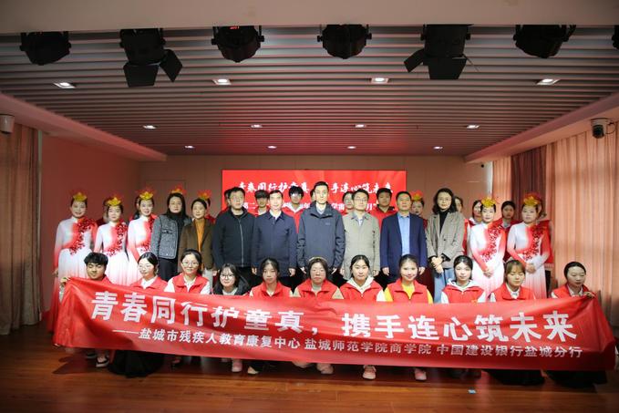 3月12日下午,商学院在盐城市残疾人教育康复中心四楼会议室开展“青春同行护童真,携手连心筑未来”志愿服务校地共建活动。盐城市残疾人联合会党组成员、副理事长王春林,校团委副书记刘成、商学院党委副书记秦圣阳,盐城市教育康复中心主任纪加芳,盐城市银行业协会诉调中心主任吴昊,中国建设银行盐城分行渠道管理部副总经理王腾飞等出席活动,商学院青年志愿者和盐城市残疾人教育康复中心师生代表参加活动。