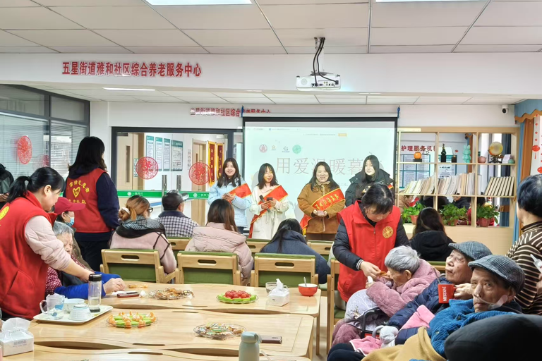 在亭湖区五星街道雅和社区、洋西社区、大星村综合服务中心、金鹰商城,音乐学院大学生志愿者为群众奉献上精心编排的文艺节目,其中不仅有热烈的红歌演唱,欢快的器乐演奏,还有活力的舞蹈表演。尤其在红歌演唱环节,熟悉的旋律勾起在场群众的回忆,不少人跟着节奏轻轻哼唱。现场气氛活跃,互动热烈,掌声笑声不断。在场群众纷纷拿出手机拍照,并竖起大拇指。活动最后,现场群众还和音乐学院志愿者一起高唱《学习雷锋好榜样》。在养老服务中心,音乐学院的志愿者们还贴心地与老人们交流互动,大家围坐在一起,耐心倾听老人们讲述过去的故事,关切询问老人们的生活近况。