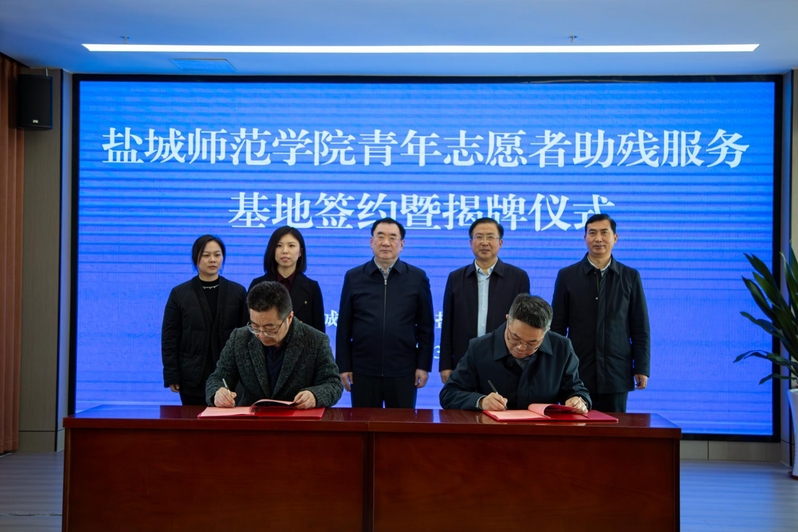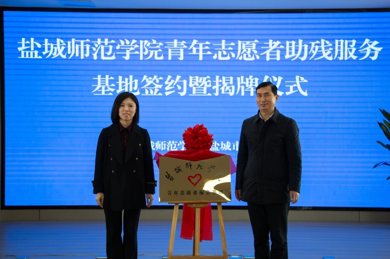 3月18日下午,beat365与盐城市残疾人联合会共建青年志愿者助残服务基地揭牌仪式在德爱大厦举行。学校党委常委、副校长庞波,市残联党组书记陈刚,校团委书记陈晔,历史与公共管理学院党委书记孙玉峰出席活动,市残联副理事长施政主持活动。