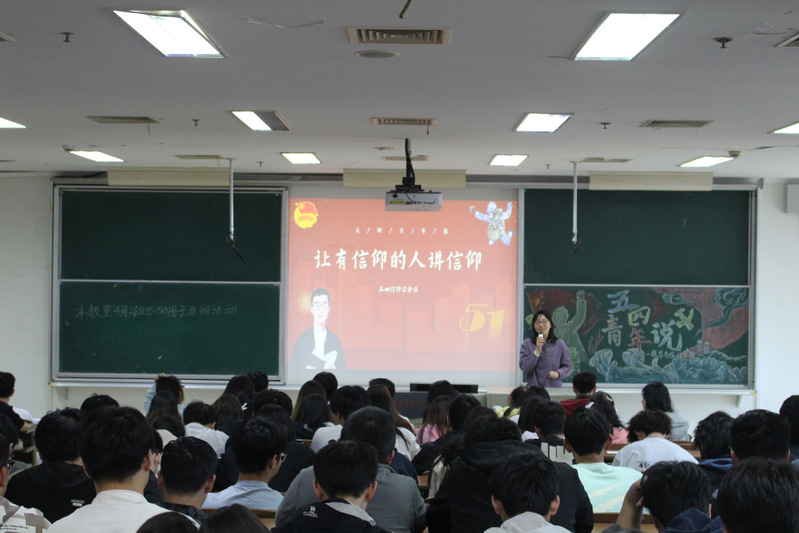 数学与统计学院举办“让有信仰的人讲信仰——五四青年说”主题活动。活动以“信仰的解析式”为主题,邀请退役大学生士兵汤楠同学、新疆支教志愿者吴思盈同学等青年榜样,用数学思维解构信仰的“参数变量”,生动诠释新时代青年如何将个人理想融入“祖国山河方程”,在青春赛道上跑出属于这代人的“最优解”。当 “迷彩绿” 的坚毅与 “志愿红” 的温暖在舞台上交织,青年学子以实际行动,将个人理想融入民族复兴的伟大征程,描绘出属于这个时代的青春华章。