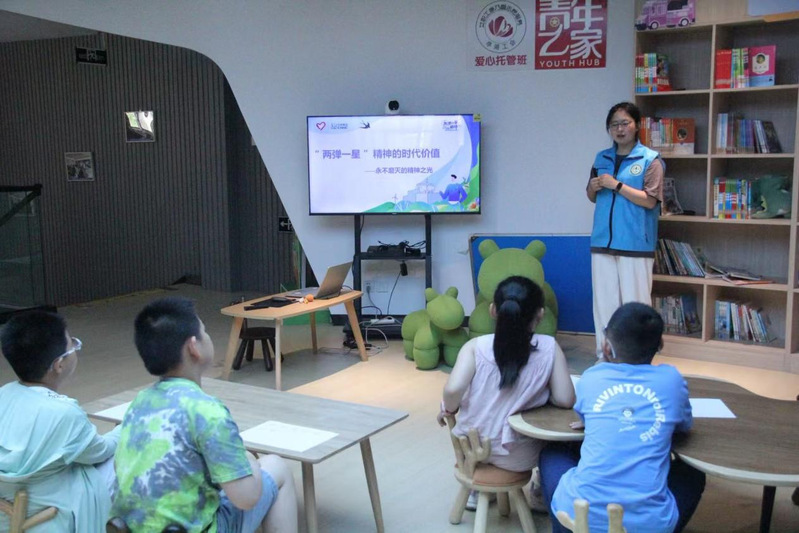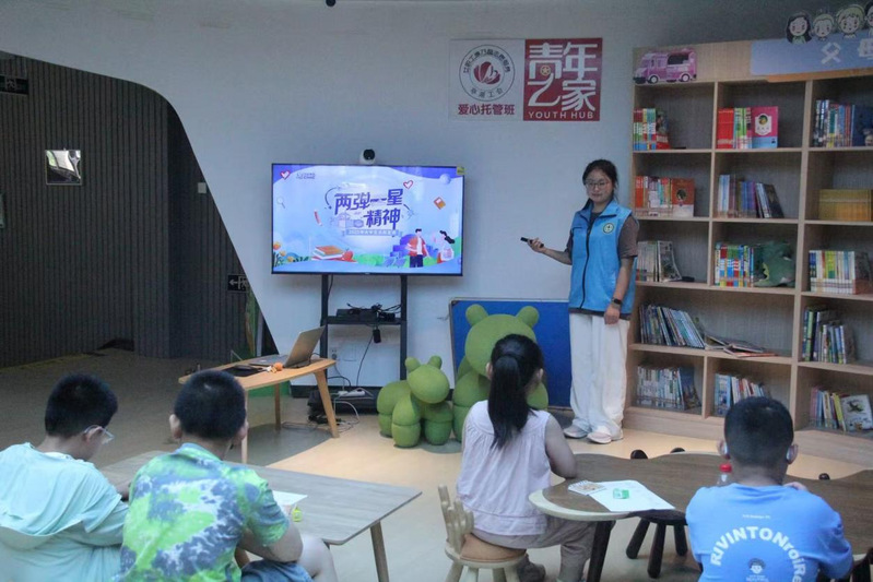 7月1日,化学与环境工程学院“‘核’心耀中华 青春志愿行”实践团走进东亭湖街道北林社区,面向青少年开展“两弹一星”精神主题宣讲。活动通过珍贵历史影像与图片,生动展现中国核事业筚路蓝缕的伟大历程,并重点讲述王淦昌院士隐姓埋名十七载、郭永怀院士以自己身躯保护机密文件的感人事迹。实践团成员通过讲述“两弹一星”元勋的爱国奉献故事,激发青少年爱国情怀与科学探索热情,引导他们认识科技自立自强的重要性,立志成为担当民族复兴大任的时代新人。