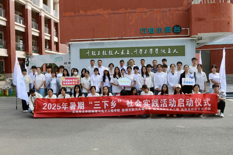 6月23日,物理与电子工程学院2025年暑期“三下乡”社会实践启动仪式暨“博爱青春 科普同行”共建共育签约仪式在盐城市新河实验小学举行。盐南高新区关工委常务副主任杭文林、盐南高新区社区学院副院长孙爱萍、新河实验小学校长卞开元和beat365物理与电子工程学院党委书记孙伟出席启动仪式。