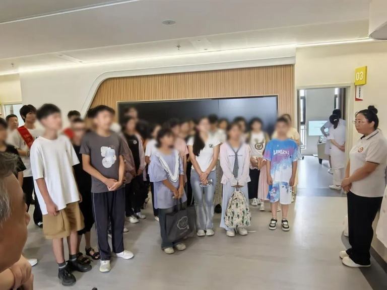 在睢宁县杏林医院体检中心,志愿者们全程提供一对一贴心陪伴,引导孩子们顺利完成各项健康体检项目。通过耐心细致地解答帮助,确保体检过程高效顺畅,为科学评估孩子们的健康状况提供了有力支持。