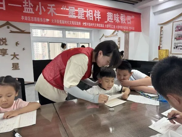 实践期间,学院组建的专业志愿者团队每天下午担任社区辅导站“青春导师”,构建“基础辅导+素养提升+科学启蒙”三位一体课程体系,并针对不同学龄段学生特点,开展分层教学。“一对一诊断式”学业辅导解疑,“趣味规则+战略思维”象棋启蒙教学,“笔画规范+艺术鉴赏”书法训练,“实验演示+自主实践”科普活动,受到孩子们的欢迎。
