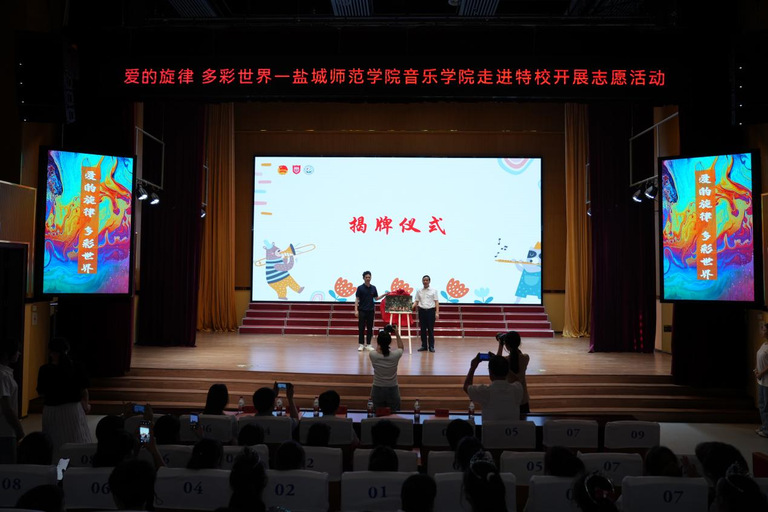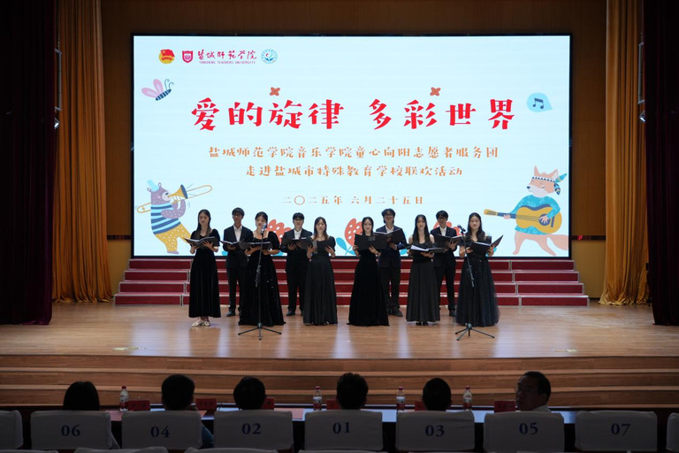 近日,音乐学院“童心向阳志愿者服务团”走进盐城市特殊教育学校开展“爱的旋律,多彩世界”主题暑期社会实践活动。两校师生以音乐为桥梁,传递爱与温暖,共同开启一场充满温情的交流之旅。