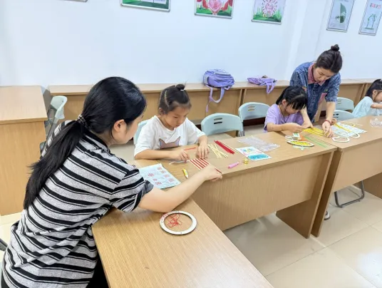 在第一次课“破冰游戏”中,志愿者胡锦杭同学以“逢7必过”破冰小游戏开场,引导小朋友们开展自我介绍,迅速拉近志愿者与青少年的距离。在随后的“拇指画”课上,孩子们以指代笔,蘸彩按压,在画纸上自由挥洒,直观感受色彩魅力,在“非遗漆扇”课上,孩子们亲手绘制装饰扇面,体验传统技艺之精妙,提升审美与动手能力。“健康小课堂”以健康飞行棋为媒介传播科学知识,涵盖饮食、运动、防病等方面,助力孩子们养成良好习惯。每日“作业辅导”环节,志愿者耐心答疑解惑,帮助孩子们巩固知识,提升学习效果。“七彩假期”课程丰富多彩,涵盖艺术创作(绘画、手工)、知识科普(财商启蒙、民族文化、爱国教育、廉洁文化、安全知识)、思维训练、健康指导、心理关怀、价值观引导、传统文化、语言学习及团队协作等方面,全方位助力青少年成长。
