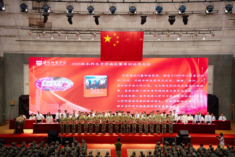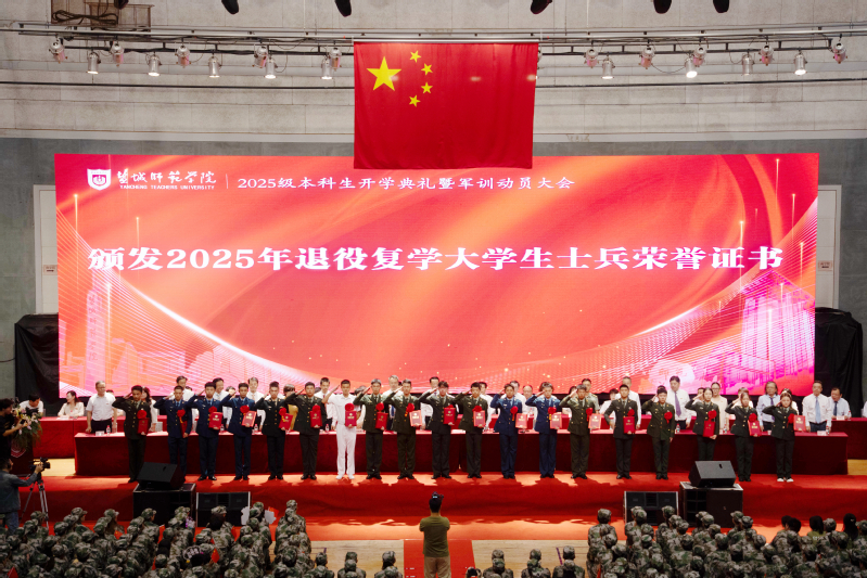 校领导还为积极响应国家号召携笔从戎、报效祖国,用热血书写无悔青春的2025年退役复学大学生士兵代表颁发荣誉证书,并向2025级新生代表赠送《习近平和大学生朋友们》和beat365中文登录入口校徽,祝贺他们成为“盐师人”。典礼在齐唱beat365中文登录入口校歌中落下帷幕。