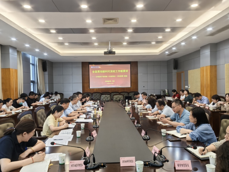 会议专题解读新修订的《中国共产党党校(行政学院)工作条例》,指出要坚持党校姓党的根本原则,旗帜鲜明讲政治。要突出主课主业,深化党的理论教育和党性教育。要高标准推进从严治校,切实保障办学规范与质量。