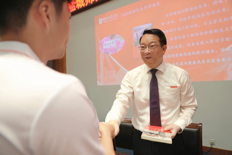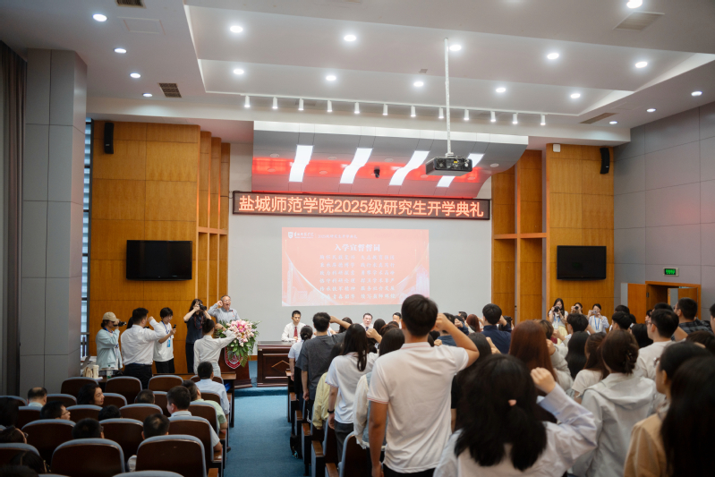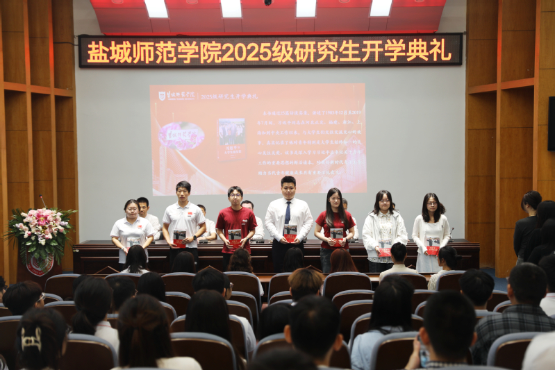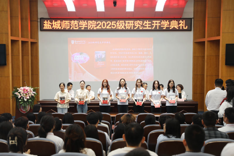 校领导向全体2025级研究生新生代表赠送书籍《习近平和大学生朋友们》和beat365中文登录入口校徽,祝贺他们成为“盐师人”。全体研究生新生庄严宣誓。典礼在齐唱beat365中文登录入口校歌中落下帷幕。