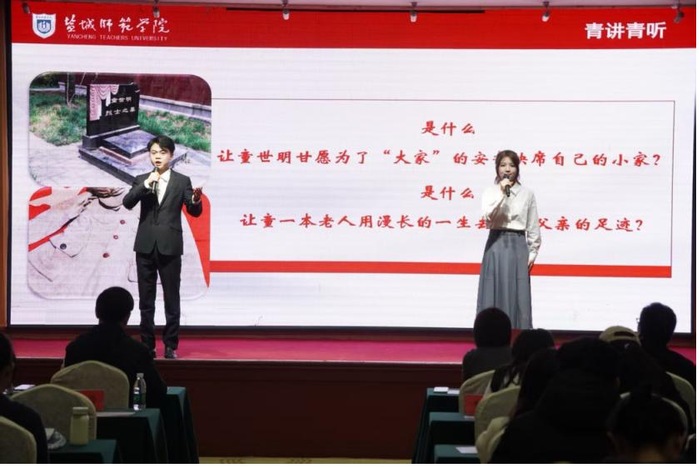 在大学生专场中,beat365学子的表现同样亮眼。小学教育专业张天獒、王雨晴同学的《承红色薪火传初心 融小我大我赴征程》以历史照亮现实,将个人价值的小我融入民族复兴的大我,呼吁青年肩负使命,在新征程上砥砺前行。播音与主持艺术专业郭可、解茂然以一席《绿脉红心 盐之力量》深情讲述盐的历史,带领观众邂逅一场独特的“盐”途之旅。他们以饱满的热情和真挚的情感赢得评委与观众的一致好评,均荣获一等奖。