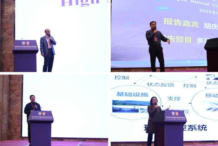 在大会主旨报告环节,香港理工大学陈文华教授、北京航空航天大学胡庆雷教授、同济大学董海荣教授和东南大学刘洪海教授分别作题为“Control Engineering in Future Highly Automated Society”“多源干扰和故障下航天器自主安全控制”“环境主动理解驱动的轨道交通自主运行关键技术”和“人体行为功能感控与智慧医疗”的主题报告。大会报告期间还举行了省自动化学会的年度颁奖仪式。