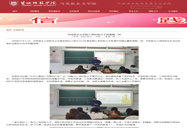 近年来,马克思主义学院在学校党委和行政的领导下,深入贯彻落实《关于加强新时代马克思主义学院建设的意见》文件精神,坚持“马院姓马、在马言马”,切实提升政治站位,持续加强队伍建设,深化思想政治理论课改革创新,发挥好研究宣传马克思主义的主阵地和立德树人主渠道作用,学院在党建工作、人才培养、教学科研等方面均取得显著成绩。学院目前拥有江苏省重点学科马克思主义理论一级学科,江苏省一流专业...