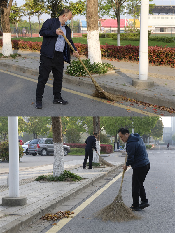 【抗疫进行时】戴斌荣、方忠等校领导与师生共同清扫校园