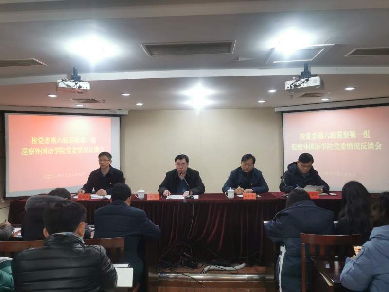 12月29日下午,学校党委第六轮巡察各组召开巡察反馈会议。党委常委、副校长、第一巡察组组长庞波,党委常委、副校长、第二巡察组组长毕凤珊,党委常委、纪委书记、省派驻监察专员、第三巡察组组长韩雅丽代表巡察组分别向外国语学院党委、海洋与生物工程学院党总支、信息工程学院党委反馈巡察情况。第六轮巡察组全体成员,被巡察单位党政领导班子全体成员、全体教职工和学生代表参加了会议。会议由被巡察党组...