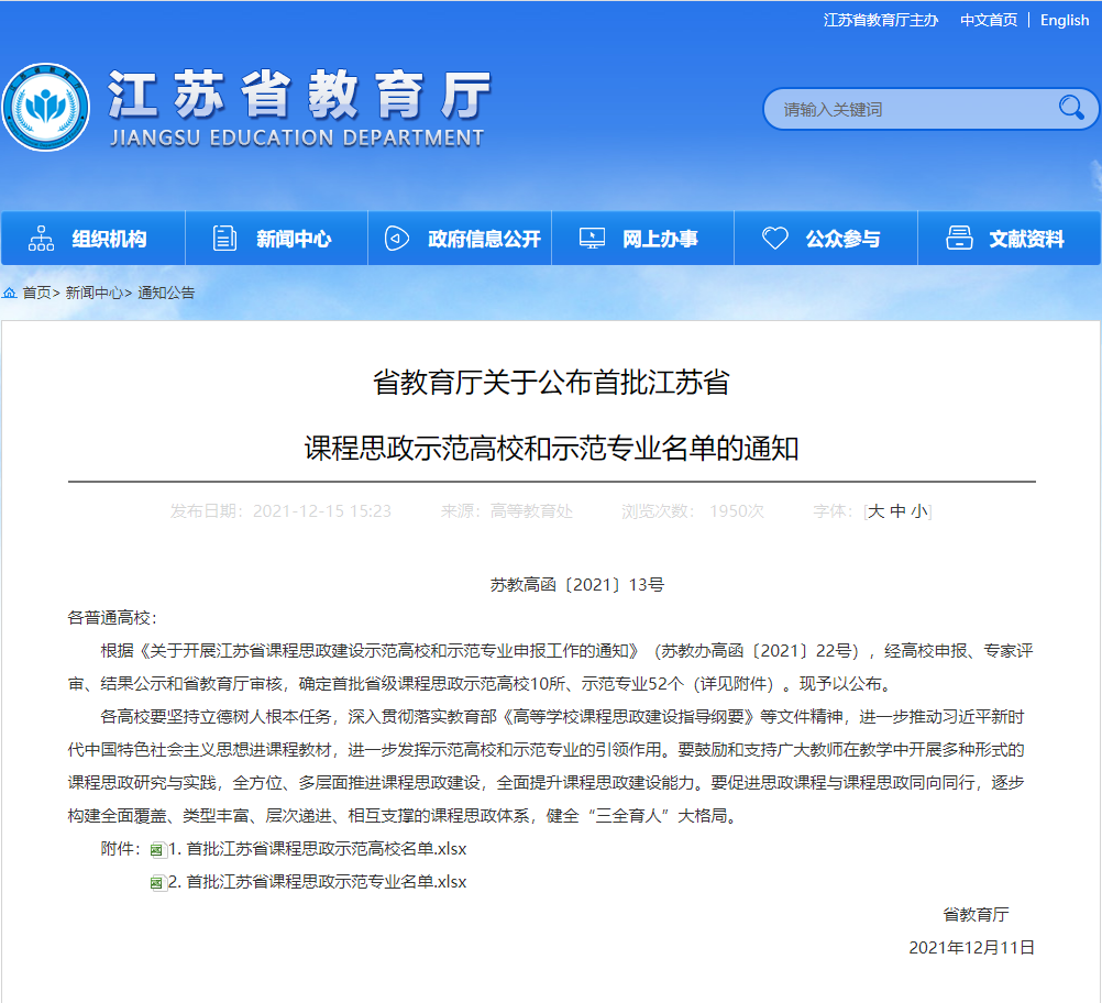 近日,江苏省教育厅发布《省教育厅关于公布首批江苏省课程思政示范高校和示范专业名单的通知》(苏教高函〔2021〕13号),共认定52个专业为江苏省首批课程思政示范专业,beat365汉语言文学(师范)专业入选。 一直以来,beat365高度重视课程思政建设工作。专门出台《推进课程思政建设实施方案》,明确推进课程思政工作的指导思想、建设目标、建设内容与要求、实施保障;学校连续三年开展课程思...