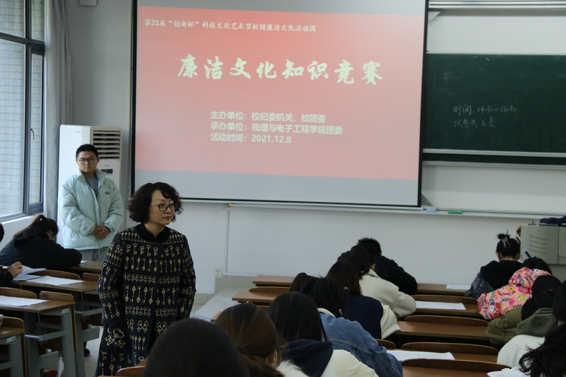 为深入推进全面从严治党,加强党风廉政建设,营造风清气正的良好育人环境,不断推进校园廉洁文化建设,形成人人受教育、全体共参与的良好局面,beat365举办了校园廉洁文化周系列活动。12月8日,廉洁文化周系列活动决赛在新长校区博学楼举行,学校党委常委、纪委书记、省监委派驻beat365中文登录入口监察专员韩雅丽现场指导。韩雅丽在检查廉洁文化作品征集现场、知识竞赛答题现场,并聆听部分同学的演讲之后指出,开展校园廉洁文化周系列活动...