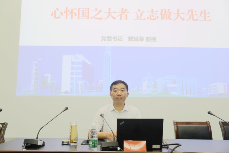 10月2日上午,2021年新教师入职培训在厚德楼二楼西会议室召开,学校党委书记戴斌荣以“心怀国之大者,立志做大先生”为题作主旨报告,入职培训会由教务处处长岳峰主持。 戴斌荣从党的百年教育征程的角度,围绕中国共产党创立之初、新民主主义革命时期、新中国成立之后、改革开放新时期、中国特色社会主义新时代等不同历史时期带领大家回顾学习中国共产党成立100年来党的教育方针发展和演...