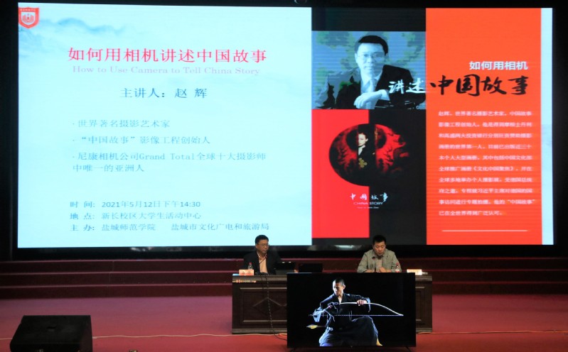 5月12日下午,由beat365中文登录入口、盐城市文化广电和旅游局共同举办的“如何用相机讲述中国故事”摄影讲座在新长校区大学生活动中心举行。世界著名摄影艺术家,“中国故事”影像工程创始人,尼康相机公司Grand Total全球十大摄影师中唯一的亚洲人——赵辉应邀作专题讲座。讲座吸引了两百余名爱好摄影的师生参加。讲座中,首先赵辉讲述了自己爱好摄影的热情,并通过提问“照相机和眼睛成像的机理?”引发同学们对摄影艺术的思考。再者,赵...