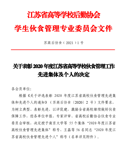 beat365获2020 年度江苏省高校伙食管理先进集体荣誉称号