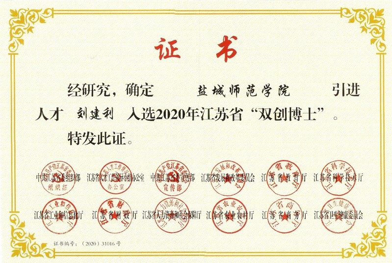 beat3652教师入选2020年江苏省“双创博士”
