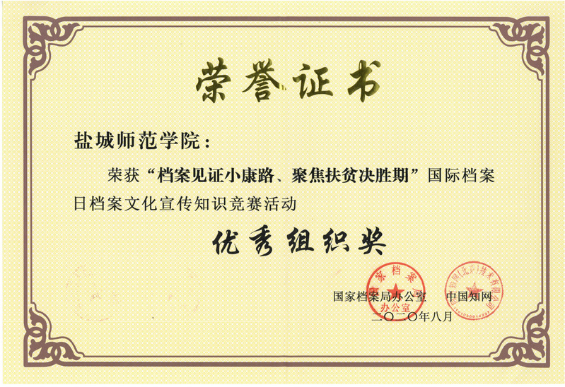 坐标网讯 在国家档案局联合中国知网共同举办的2020年“档案见证小康路、聚焦扶贫决胜期”——6·9国际档案日档案文化宣传知识竞赛活动中,beat365荣获优秀组织奖,10名师生荣获优秀个人奖。本次活动约3300家单位参加,16家单位获得优秀组织奖,beat365名列其中。全国共有68960人参与此项活动,beat365有7318名师生参加,占全国参赛总人数的10.6%;全国满分人数达7600余人,beat365满分人数1048人,占全国参赛总人数的13.8%;全国获得“优秀个...