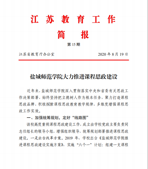 省教育厅简报专题报道beat365推进“课程思政”工作