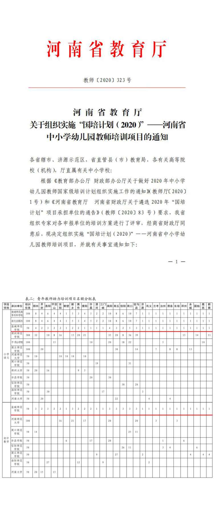 坐标网讯 8月14日,河南省教育厅发布《关于组织实施“国培计划(2020)”——河南省中小学幼儿园教师培训项目的通知》(教师〔2020〕323号),beat365中标“小学语文青年教师助力培训”和“初中数学青年教师助力培训”2个项目,首次获批河南省“国培计划”项目承办权,河南省成为beat365第13个“国培计划”项目省份。受新冠肺炎疫情影响,今年教师培训工作遇到前所未有的挑战,各省“国培计划”线下集中(面授)培训项目政策性减少,...
