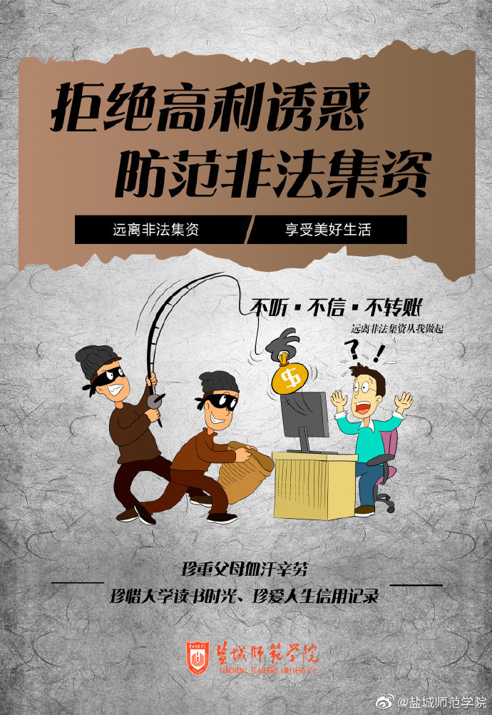 坐标网讯 近日,为进一步提高师生员工防范非法集资意识,学校围绕防范非法集资宣传月“守住钱袋子·护好幸福家”主题,开展一系列宣传教育活动。活动期间,学校利用电子屏幕持续滚动播放“远离非法集资,享受美好生活”、“珍重父母血汗辛劳,珍惜大学读书时光,珍爱人生信用”等宣传标语和公益广告;在学校醒目位置设立防范非法集资咨询台、张贴警示海报、提供公益宣传资料;通过学校微信公众号、...